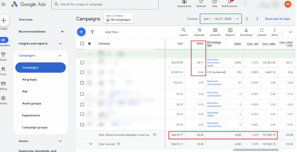 We optimized their Google Ads account with advanced bidding strategies, creative ad variations, and tighter keyword targeting.